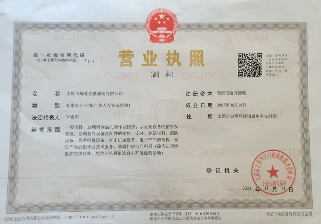 太原市輝業(yè)達(dá)玻璃鋼有限公司是一家集玻璃鋼科研、生產(chǎn)、銷售與技術(shù)服務(wù)為一體的多元化公司。同時備有一支高素質(zhì)的員工隊伍,團(tuán)結(jié)而智慧的管理層,科學(xué)的管理方法,雄厚的技術(shù)實力為企業(yè)的發(fā)展奠定了基礎(chǔ),這也是給用戶提供優(yōu)秀的施工質(zhì)量,優(yōu)質(zhì)的產(chǎn)品和服務(wù)的有力保證。